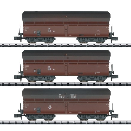 Das Set beinhaltet drei Schüttgutwagen des Typs Fad50 der Deutschen Bundesbahn. Die Wagen sind authentisch gealtert.